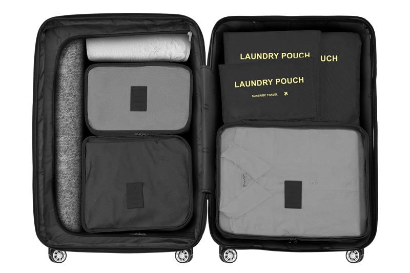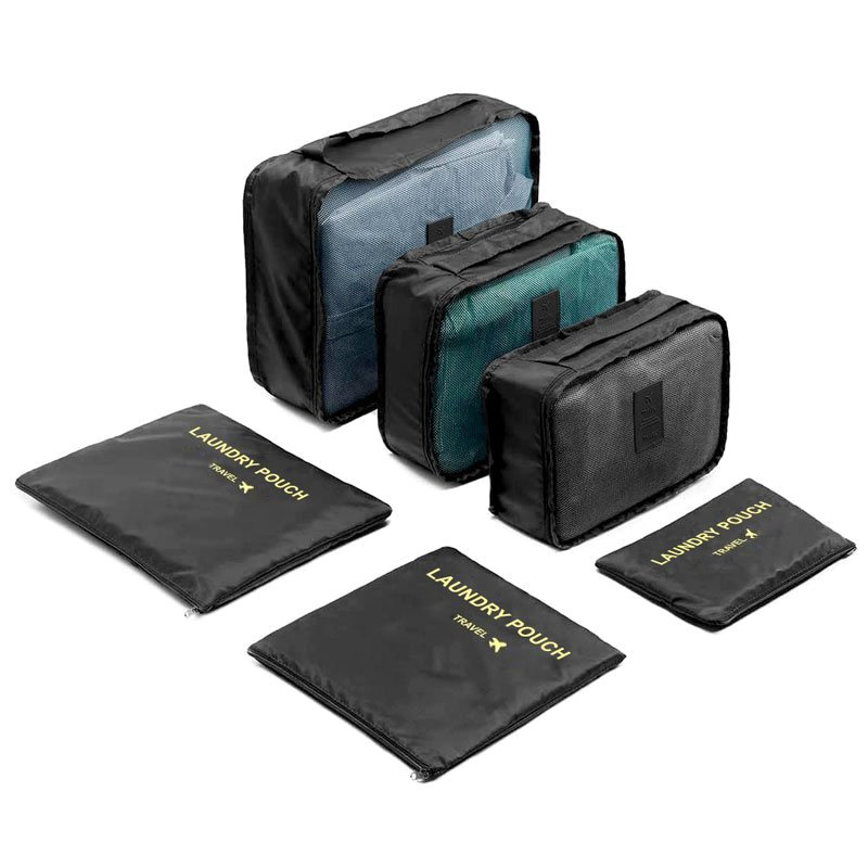 6-dielna praktická sada organizérov na oblečenie a vreciek na kozmetiku, vďaka ktorej budete mať v kufri všetko prehľadne usporiadané. Rôzne veľkosti obalov umožňujú veľkú variabilitu využitia.
