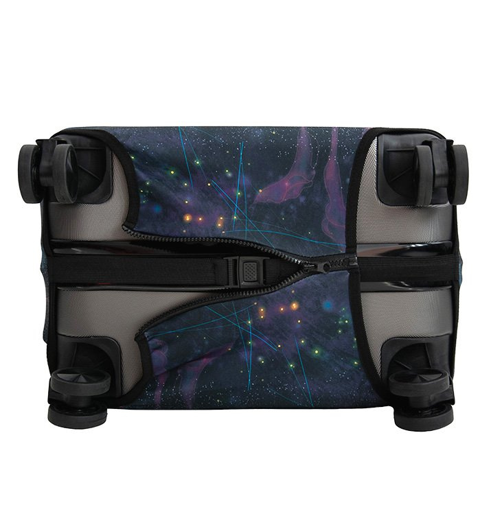 obal sa jednoducho natiahne na kufor a dole uzavrie pomocou zipsu a elastického pásika s prackou