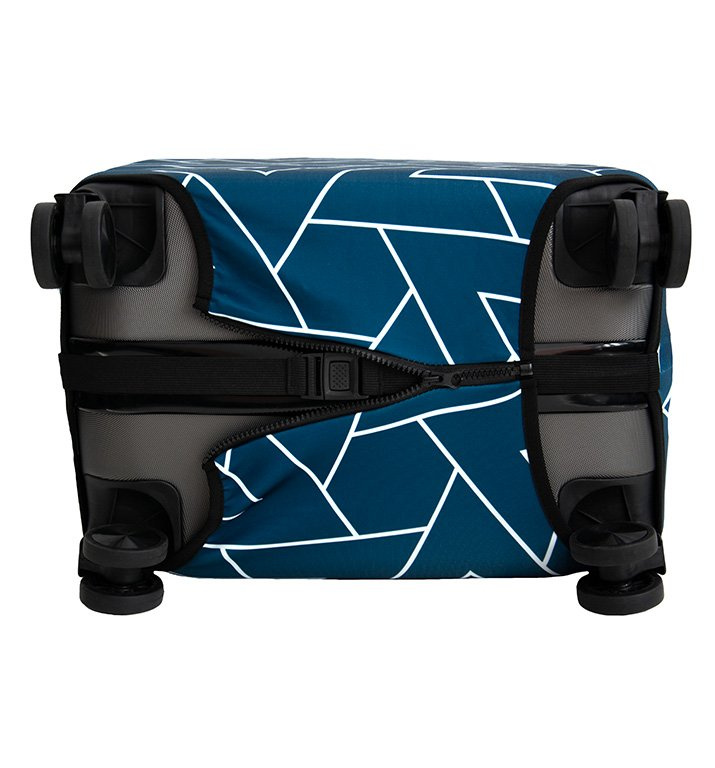 obal sa jednoducho natiahne na kufor a dole uzavrie pomocou zipsu a elastického pásika s prackou