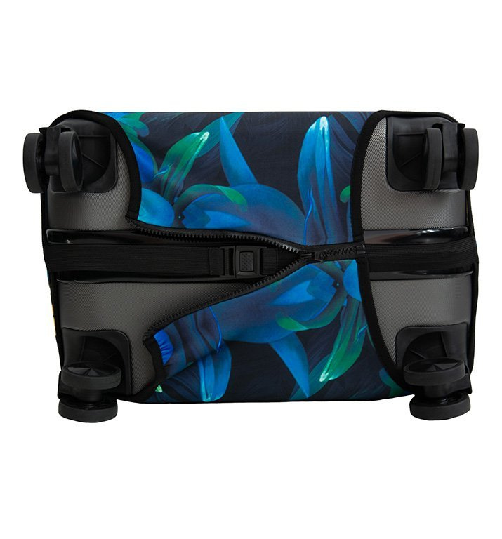 obal sa jednoducho natiahne na kufor a dole uzavrie pomocou zipsu a elastického pásika s prackou